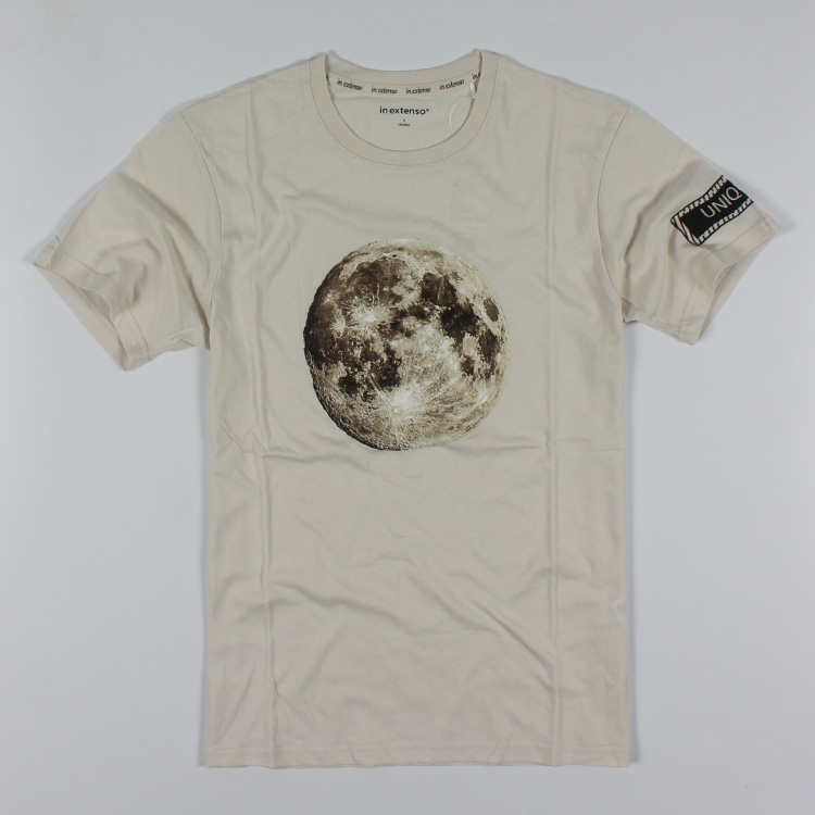 科幻風 純棉 月球膠印圖案 百搭圓領 時尚簡約男款夏季短袖T恤
