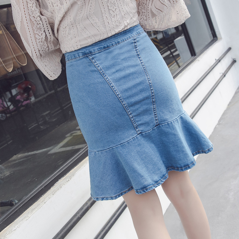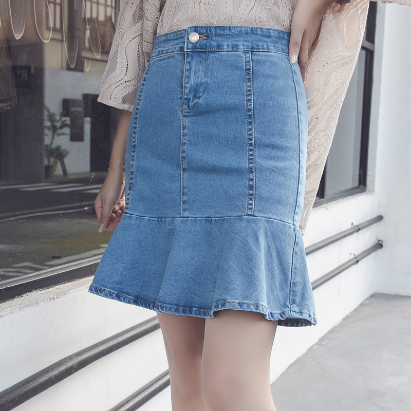 韓版高腰牛仔裙半身裙女荷葉邊短裙A字裙包臀魚尾裙褲裙半裙夏季