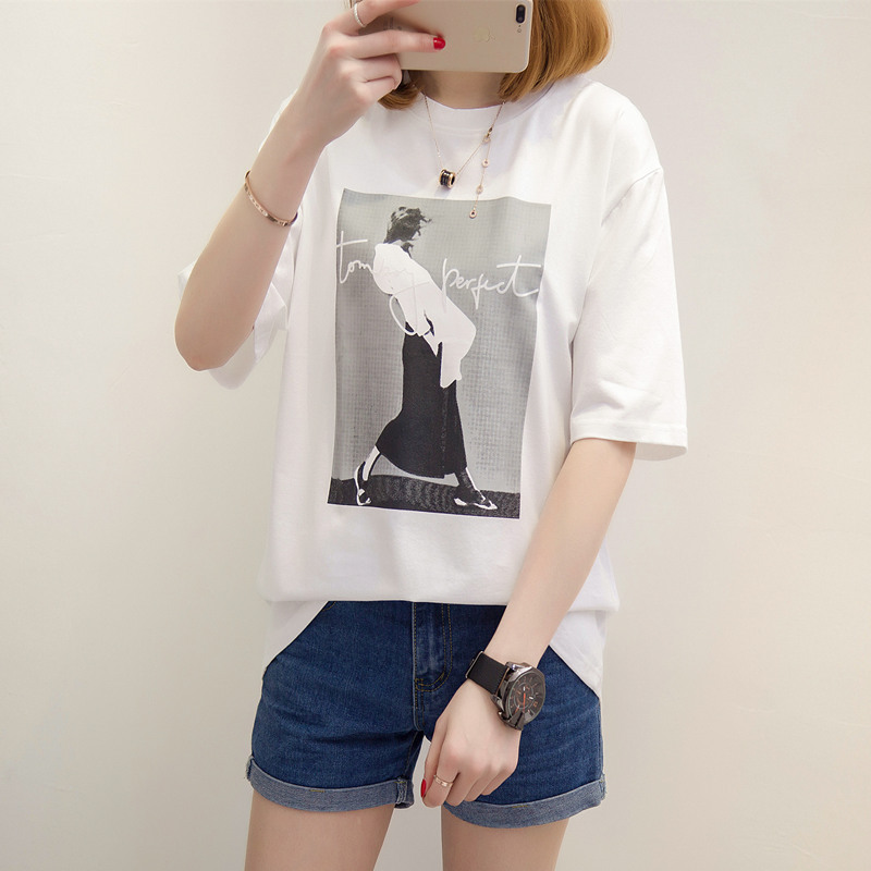 短袖t恤女白色上衣寬松打底衫女夏裝韓版印花個性小衫新款潮
