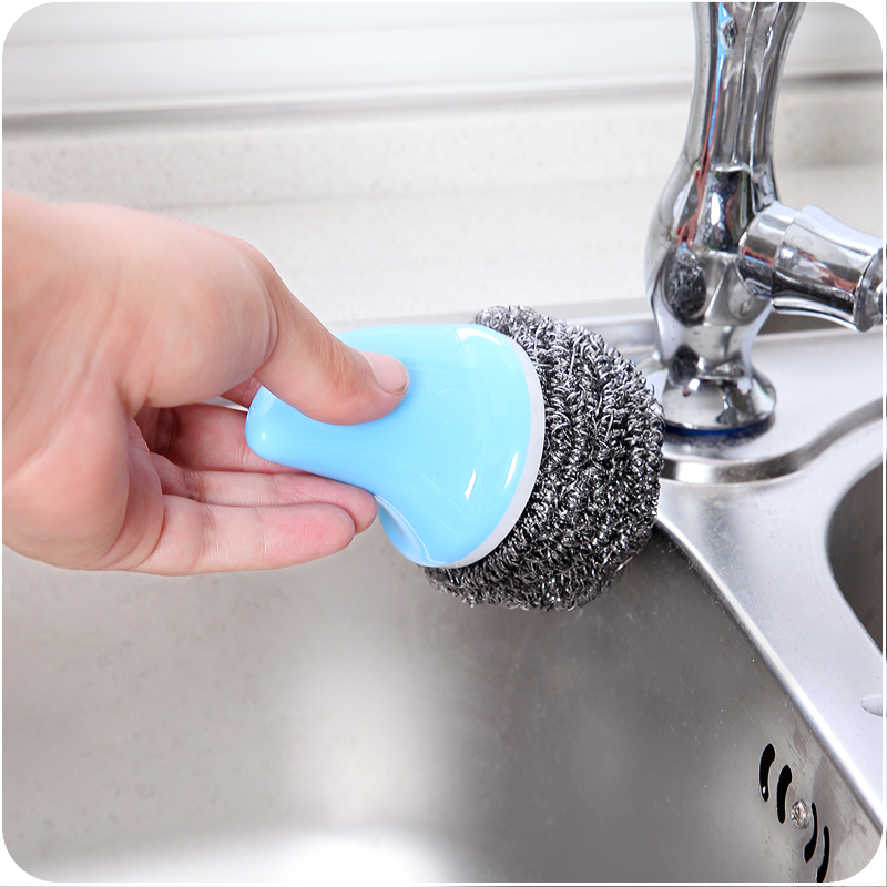 創意鯊魚柄鋼絲球清潔球廚房耐用洗鍋刷帶柄去污刷子不臟手鐵絲球