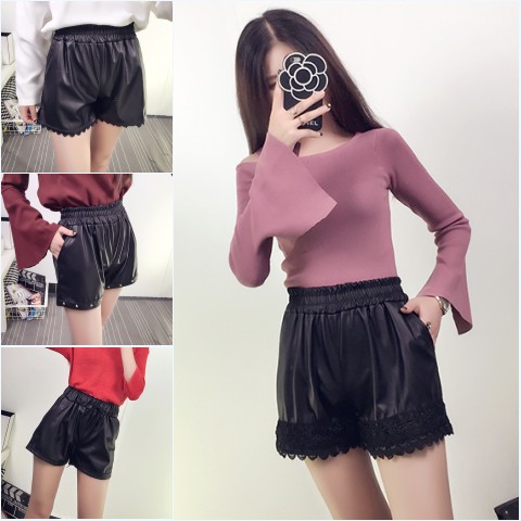 秋季新款韓版休閑褲百搭修身顯瘦黑色松緊高腰短褲皮褲熱褲女