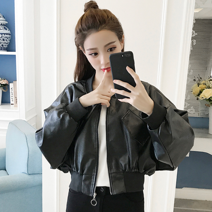 秋裝新款韓版外套時尚立領PU皮衣女裝開衫上衣寬松顯瘦夾克短外套