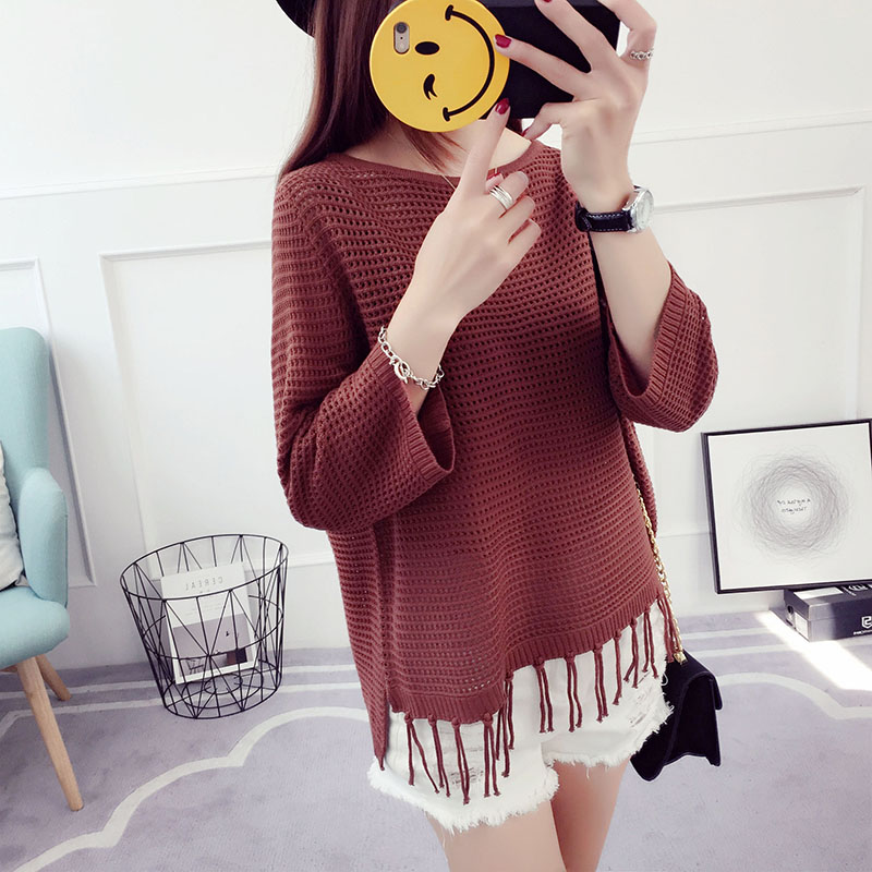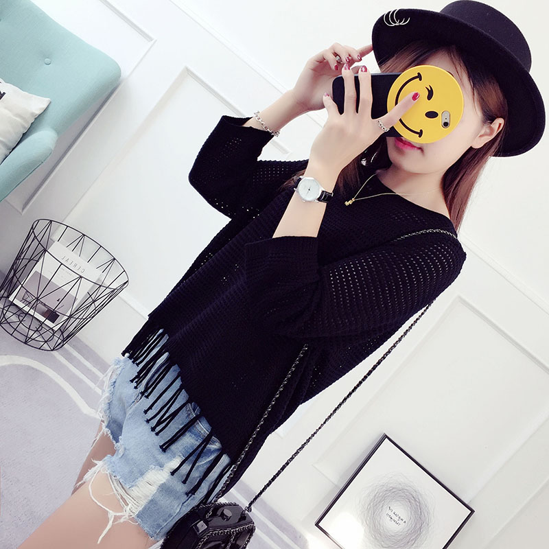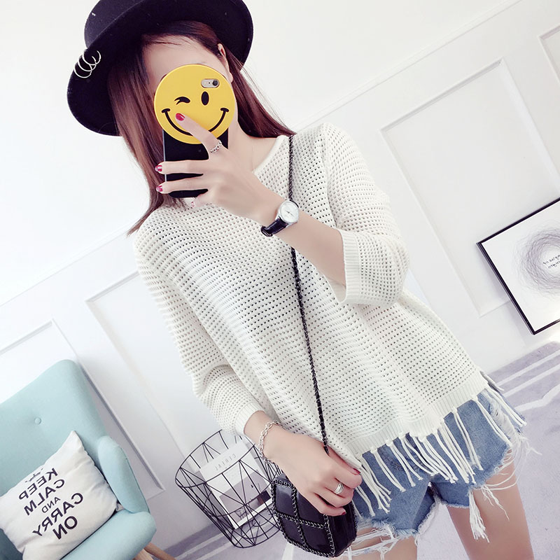 毛衣女套頭寬松韓版春秋新款鏤空針織衫打底衫短款薄外套夏季