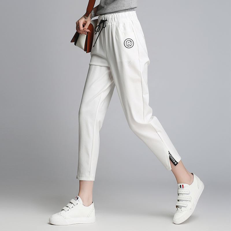 薄款運動褲女夏季韓版寬松大碼九分哈倫褲學生顯瘦百搭開叉休閑褲
