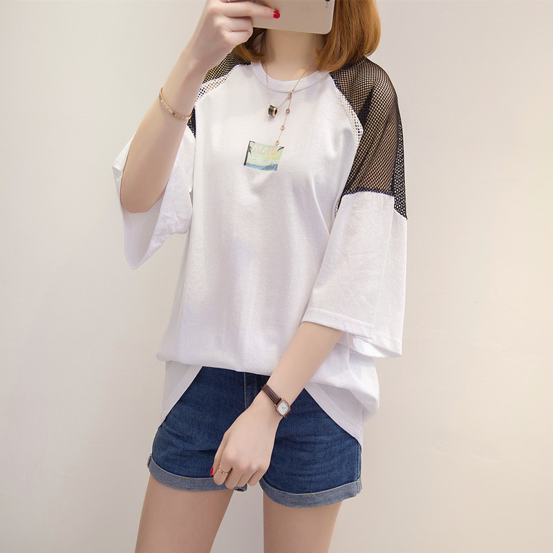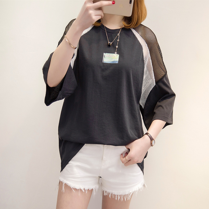 短袖t恤女新款春裝中長袖寬松大碼打底體恤衫百搭上衣女潮