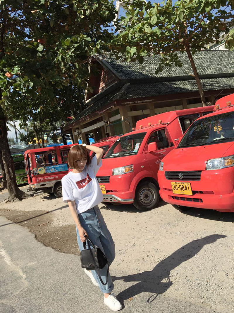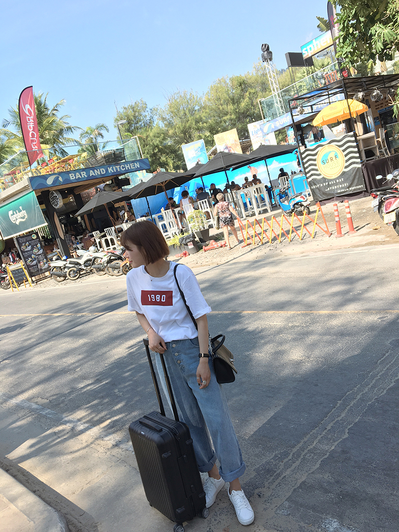 春夏新款韓版寬松顯瘦白色簡約數字圓領短袖圓領上衣T恤女裝