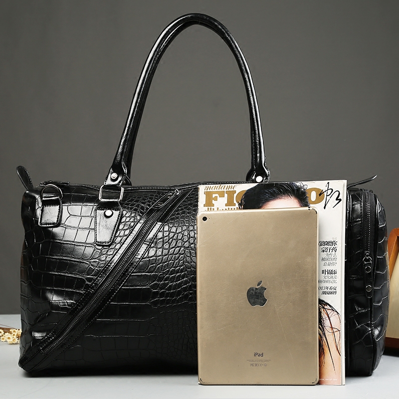 大容量男士旅行包鱷魚紋皮質韓版手提單肩包斜挎出差旅行背包潮