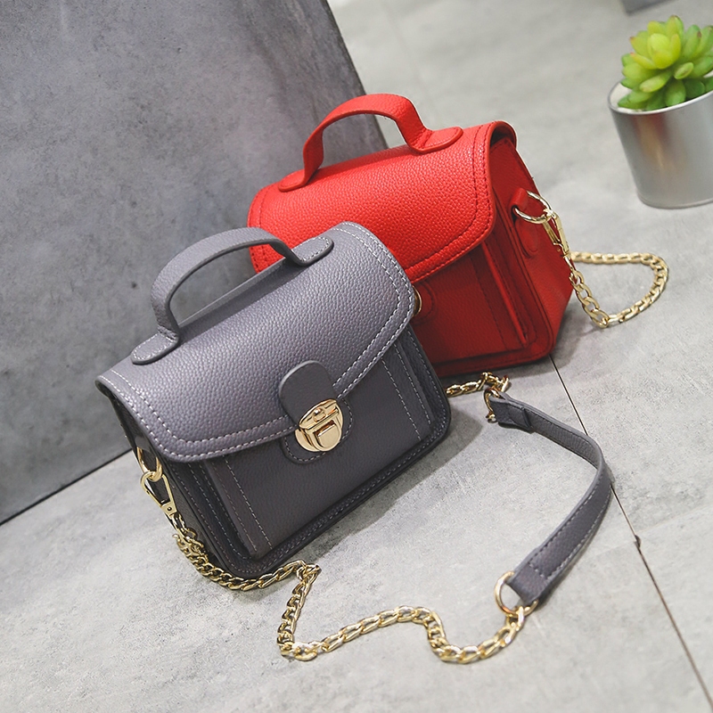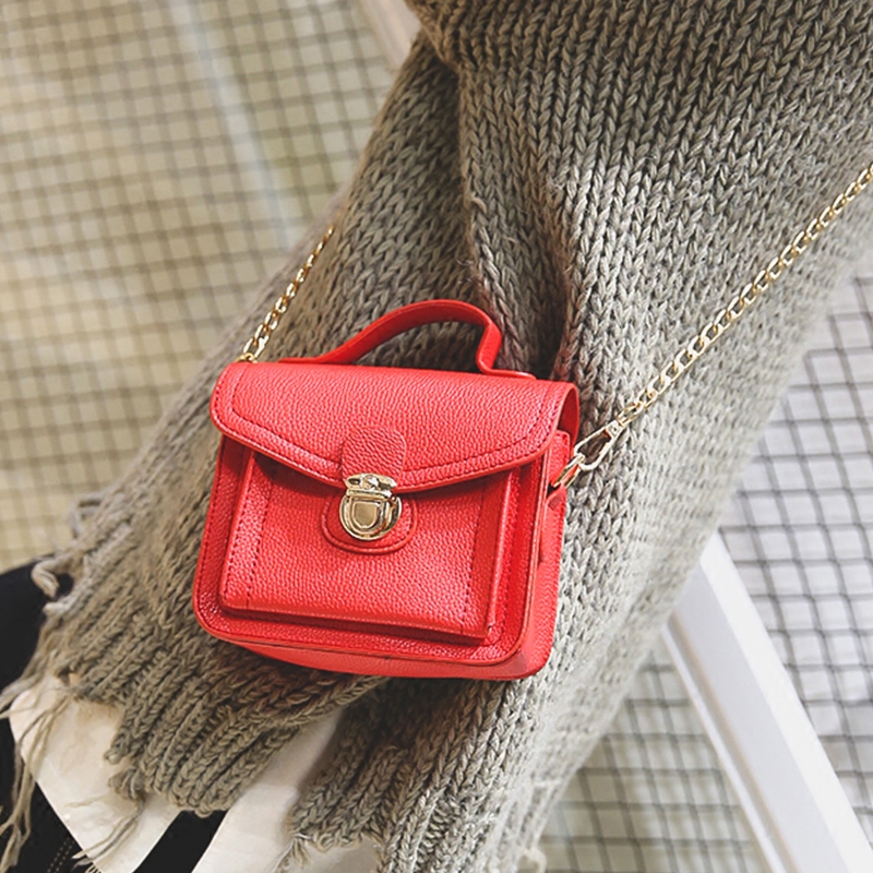 新款韓版復古鎖扣小方包迷你單肩女包簡約鏈條手提小包斜挎包