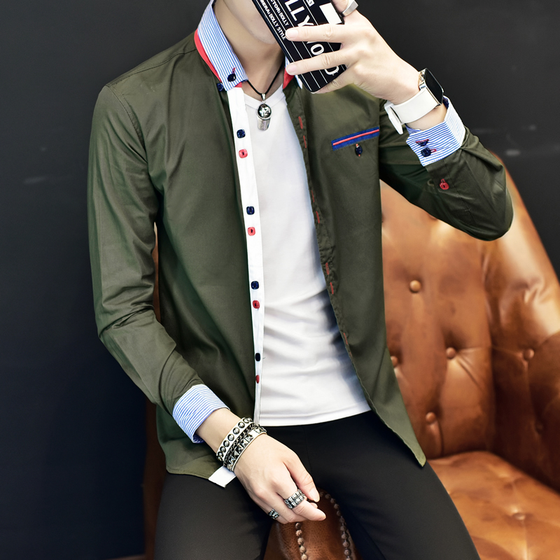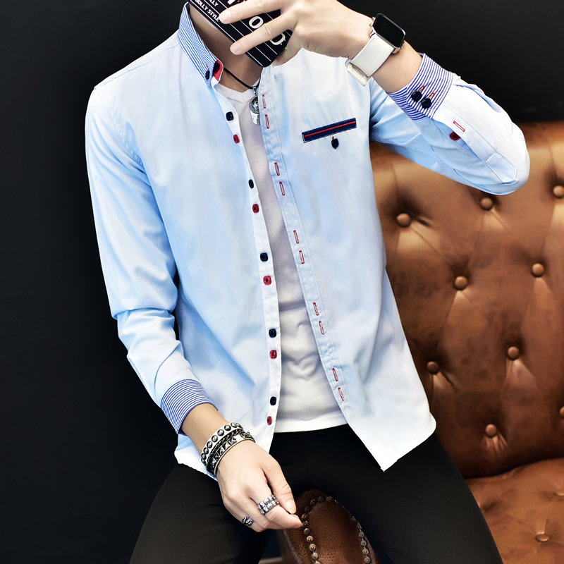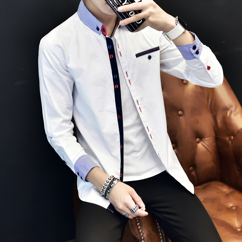 韓版修身襯衣青年大碼長袖襯衫男士休閑寸衫春新款男裝
