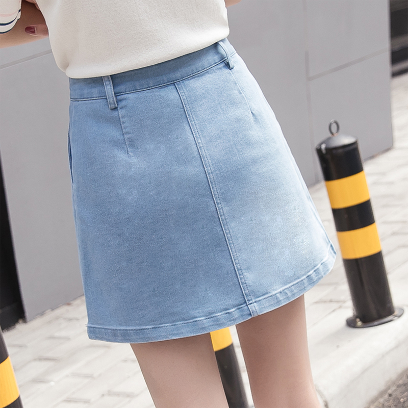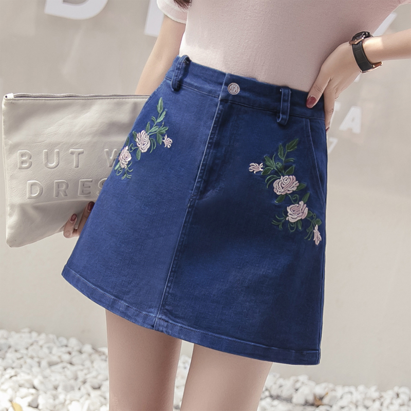牛仔裙褲女夏高腰A字包臀牛仔半身裙女裙大碼裙子防走光刺繡半裙