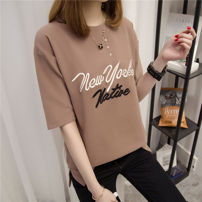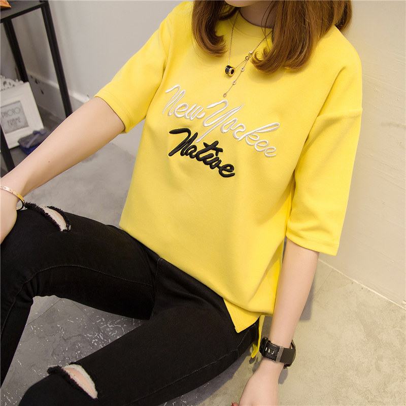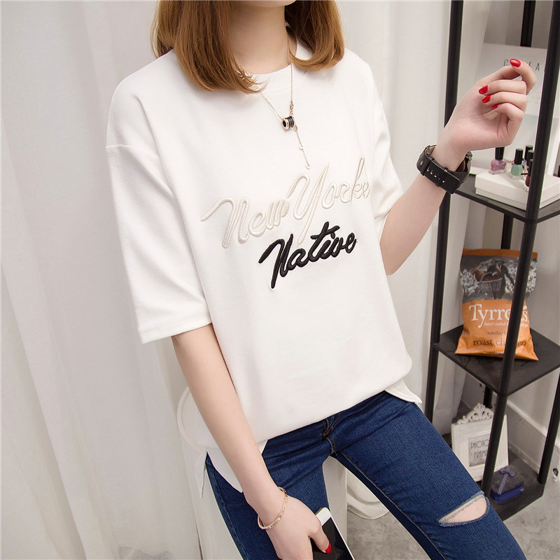 夏裝女裝短袖女夏季韓版寬松百搭純色t恤中長袖上衣服字母潮