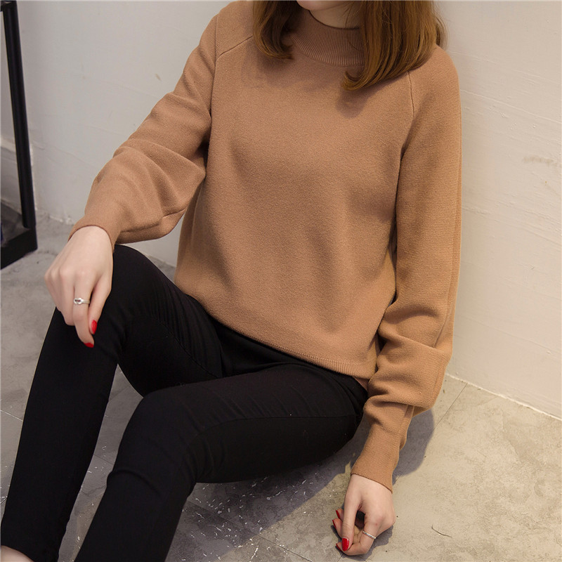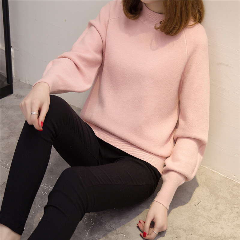 女裝冬裝新款潮圓領針織衫女套頭韓版純色毛衣女秋冬打底衫