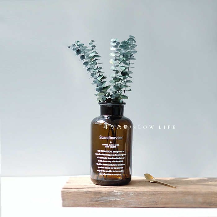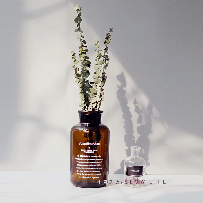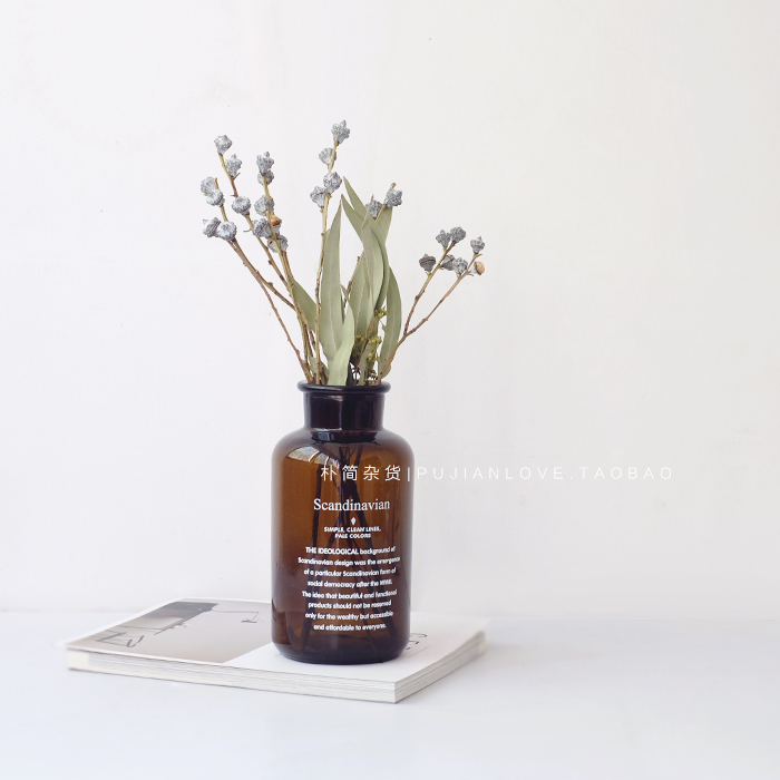 ins北歐復古簡約棕色玻璃花瓶 大號插花瓶花器 鄉村家居擺件