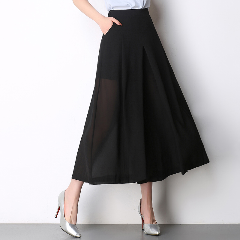 雪紡闊腿褲女九分褲春夏季高腰薄款寬腿褲大碼休閑褲甩褲裙褲