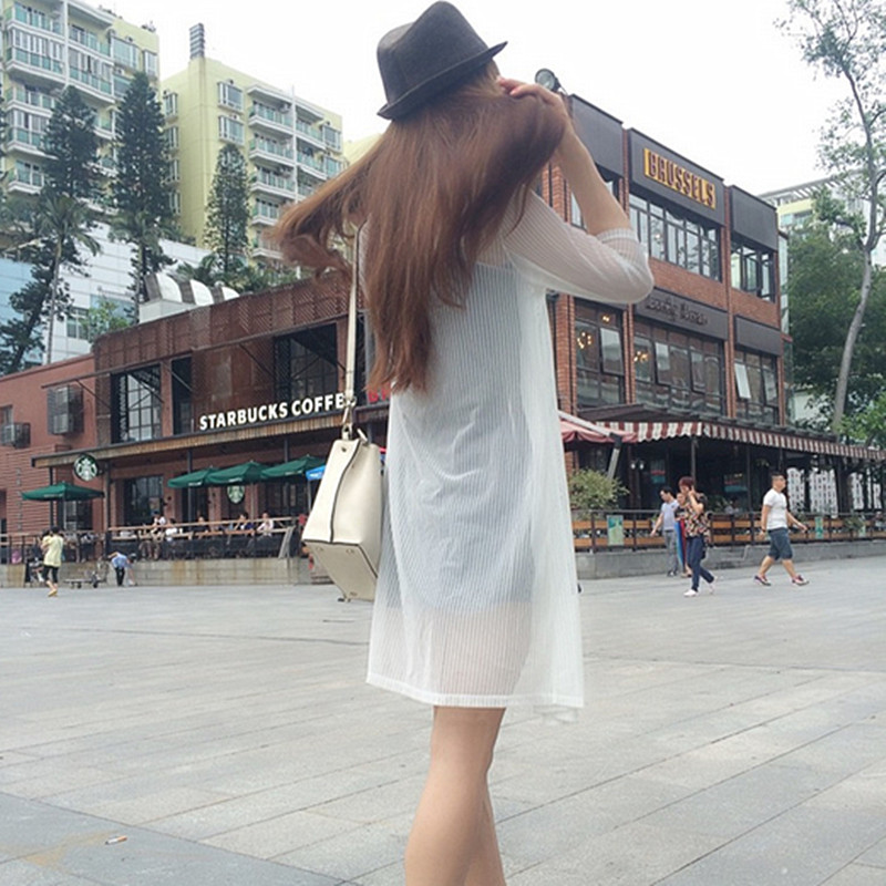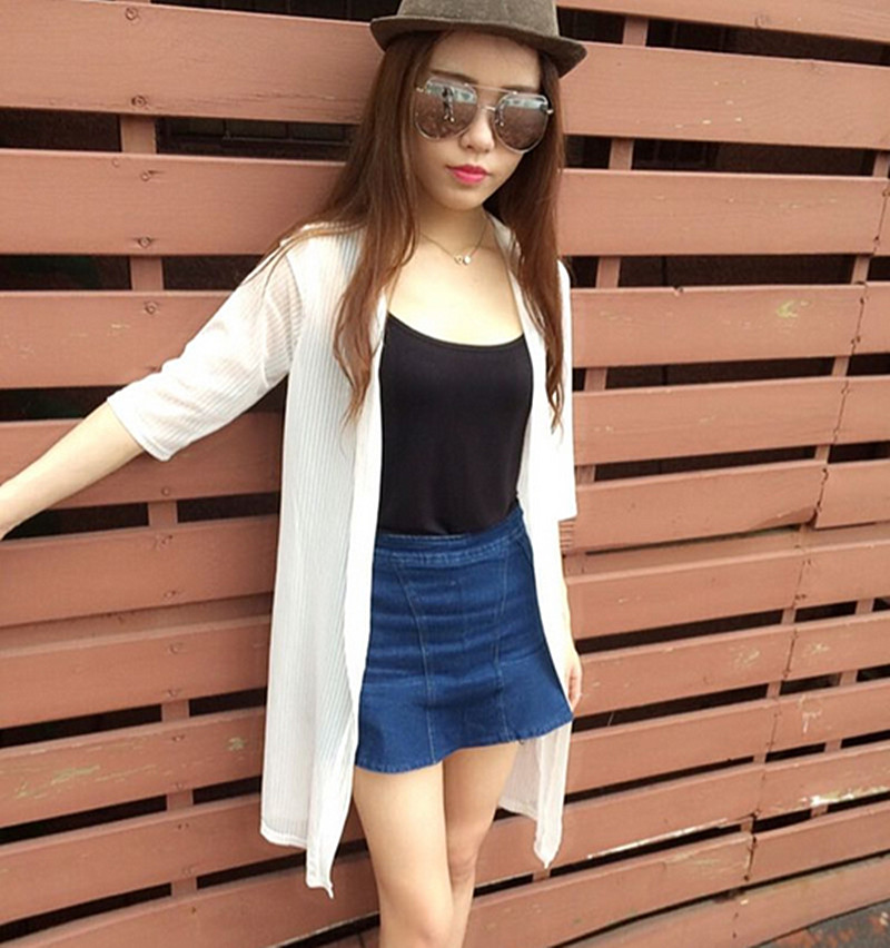 中長款防曬衣中袖女夏超薄雪紡衫網紗開衫空調衫披肩外套女式夏裝
