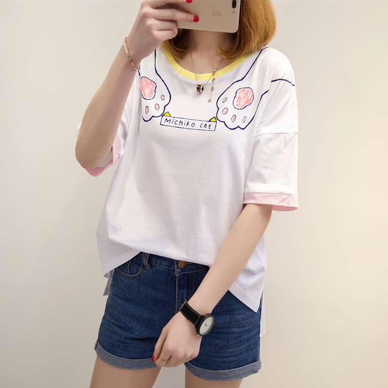 夏裝新款女裝白色t恤女上衣寬松短袖韓版學生打底可愛體恤衫