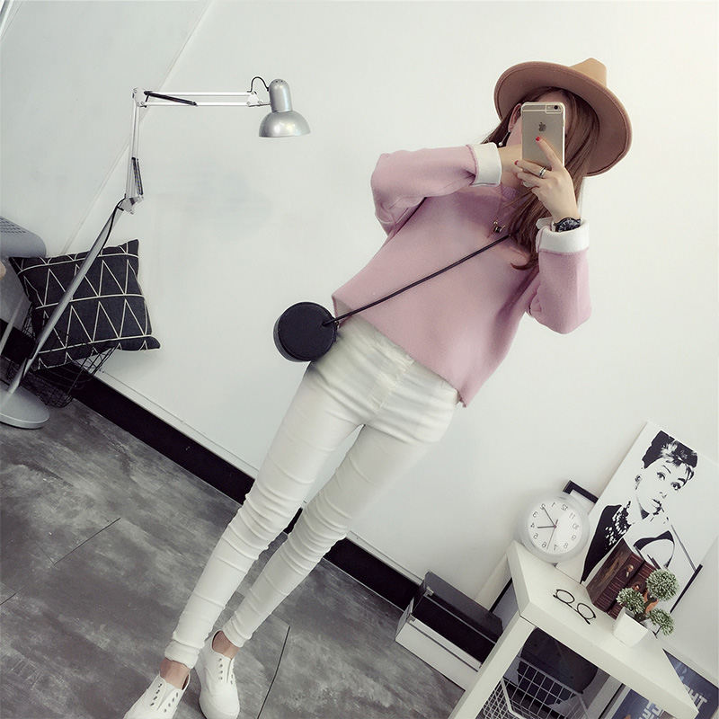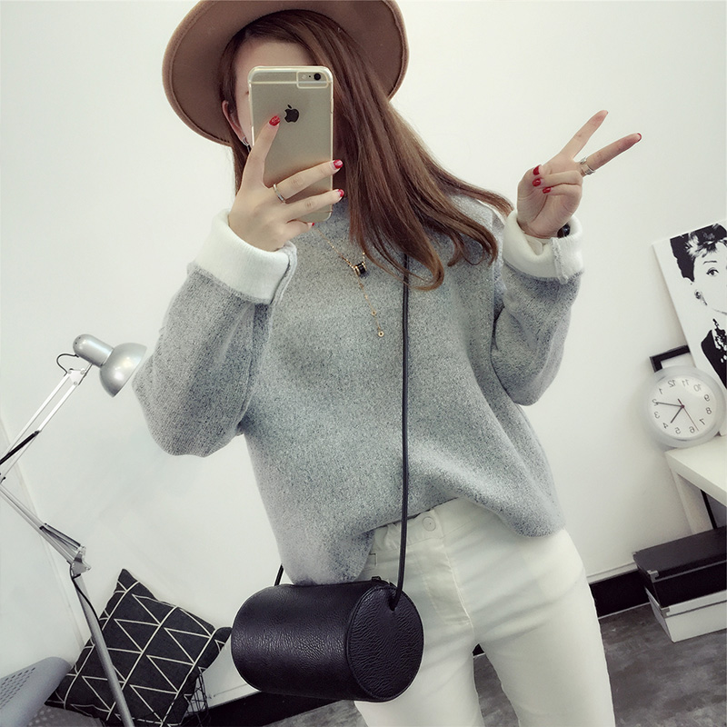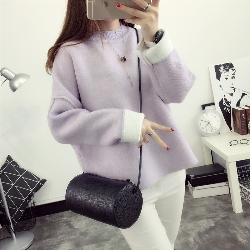 套頭毛衣女秋冬韓版短款寬松針織衫純色外套女裝秋裝新款潮