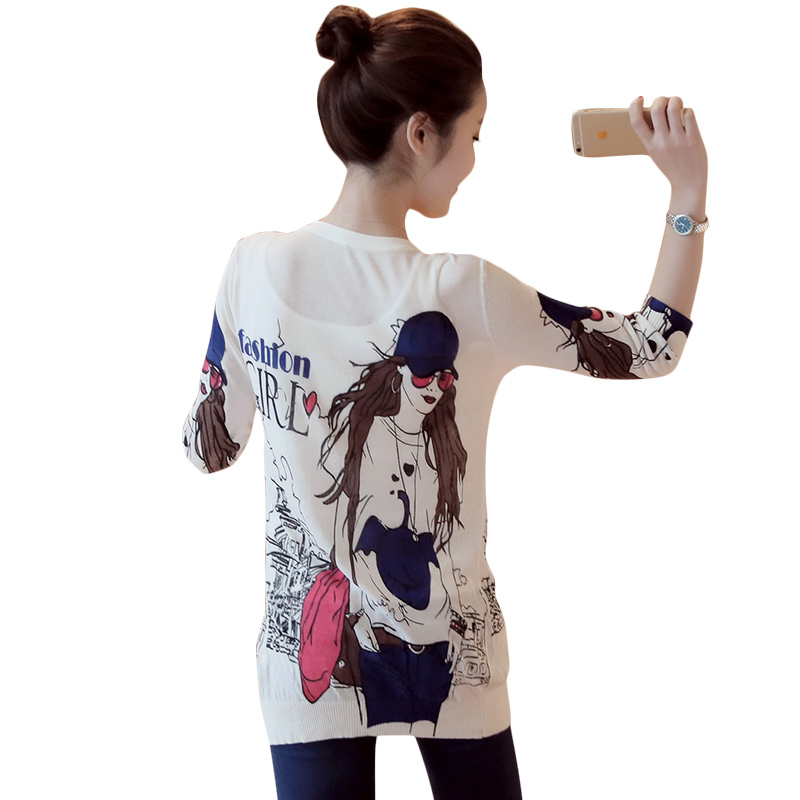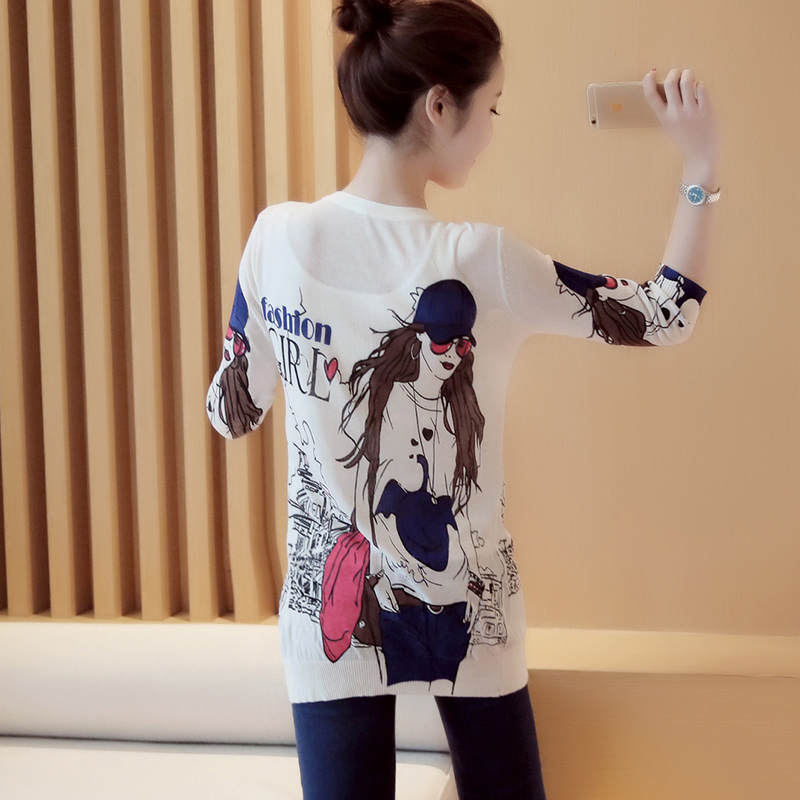 外搭針織開衫女中長款薄款印花針織衫外套女夏七分袖防曬衣空調衫