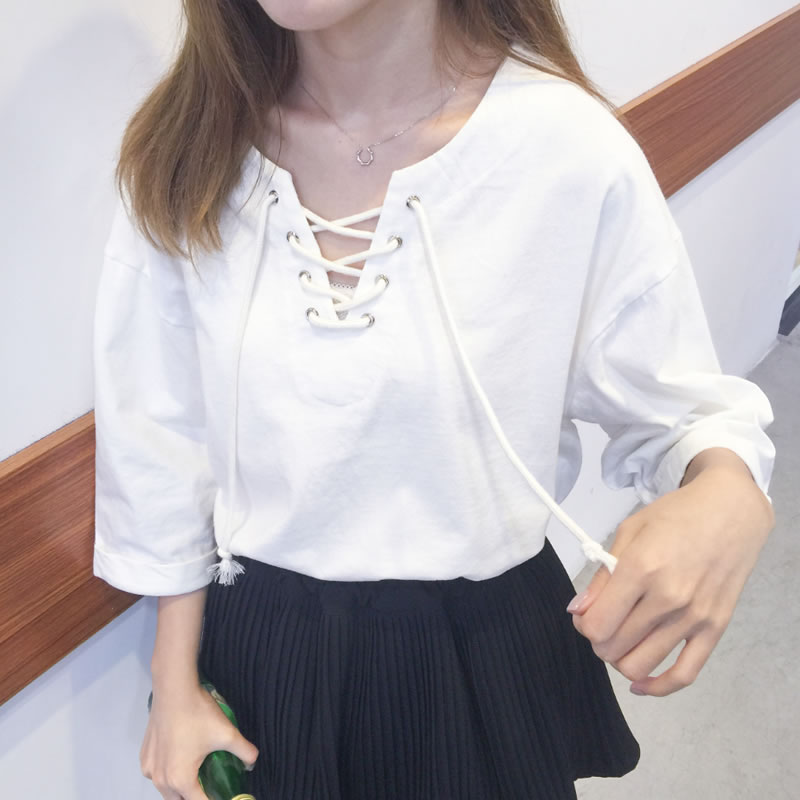 沒有過多繁瑣復雜的修飾 最大的亮點在領口 V領設計 金屬圓形穿孔綁帶