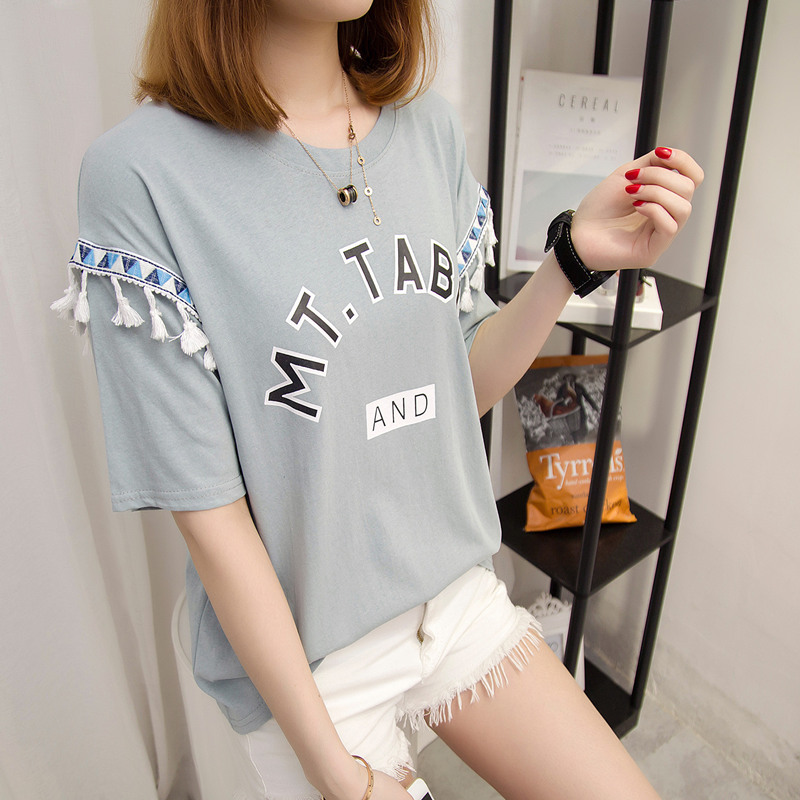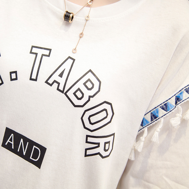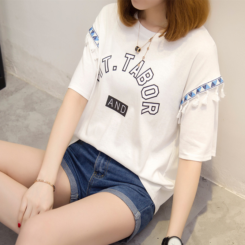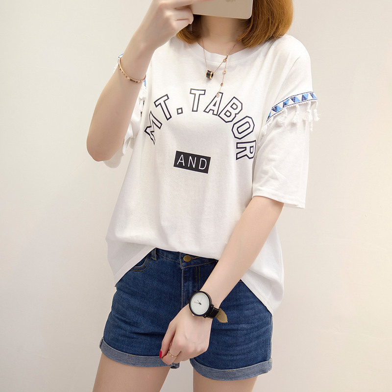 夏裝新款女裝上衣寬松白色t恤女短袖系帶韓版簡約體恤衫百搭