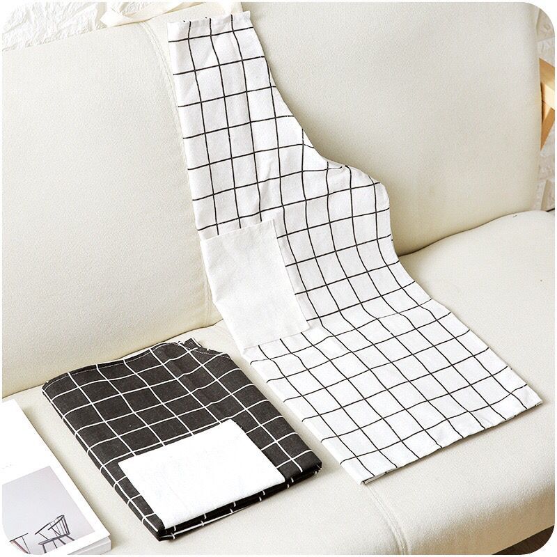 廚房家居純棉麻圍裙現代簡約布藝無袖印花防油污掛脖系帶格子圍裙