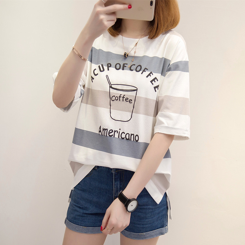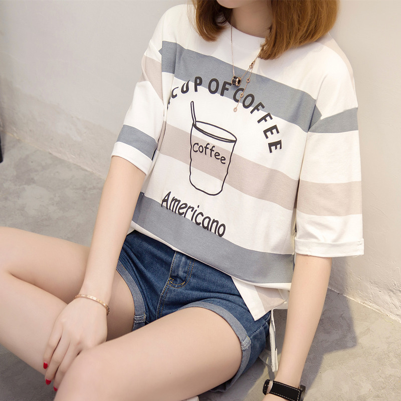 條紋短袖t恤女寬松韓版學生百搭bf風體恤小清新上衣夏裝新款