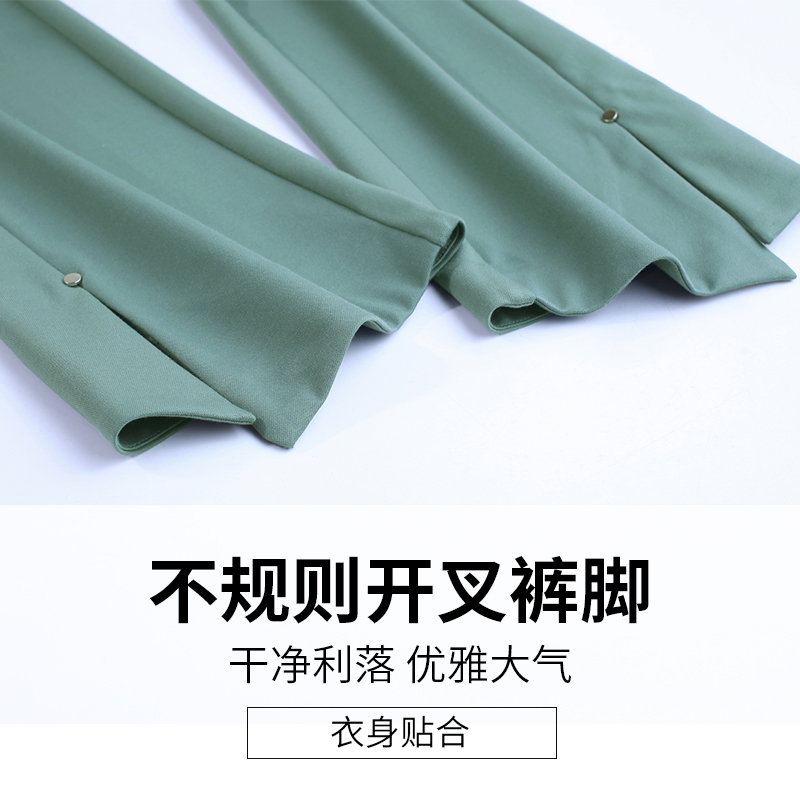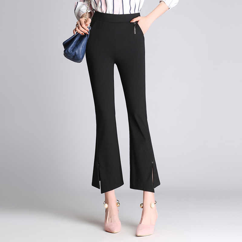 黑色微喇叭褲女高腰開叉九分褲彈力顯瘦魚尾褲春夏休閑西裝褲薄款