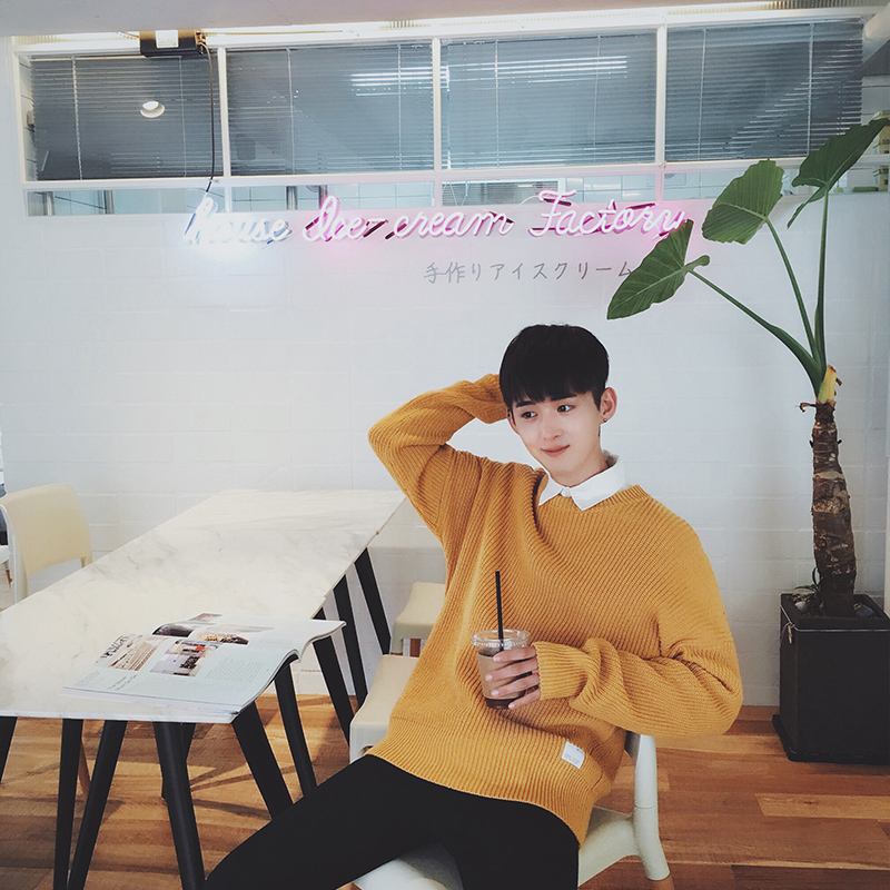 秋冬新款韓版簡約多色基礎寬松套頭男士針織衫毛衣