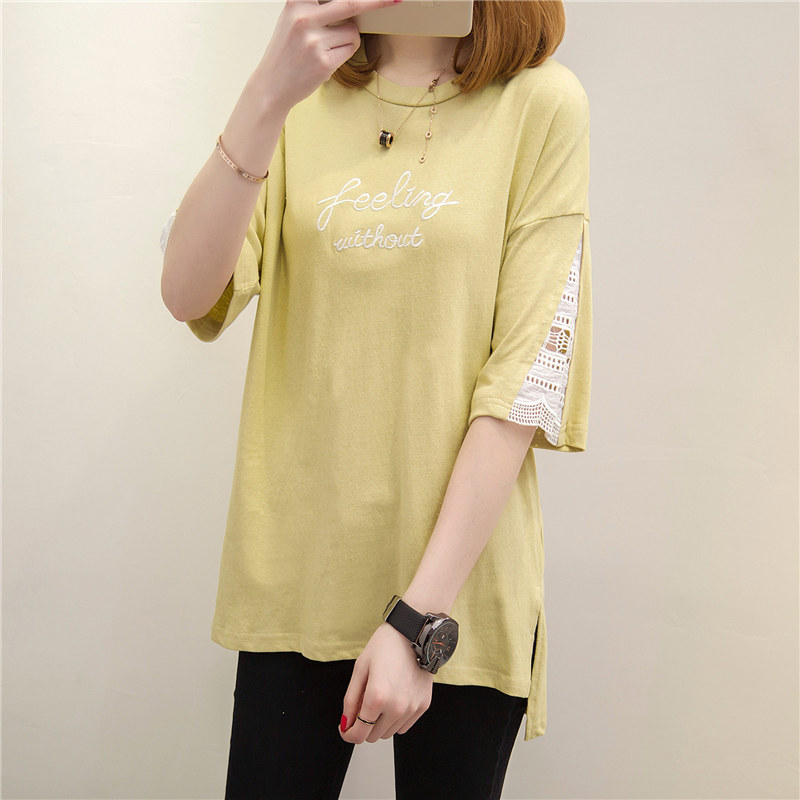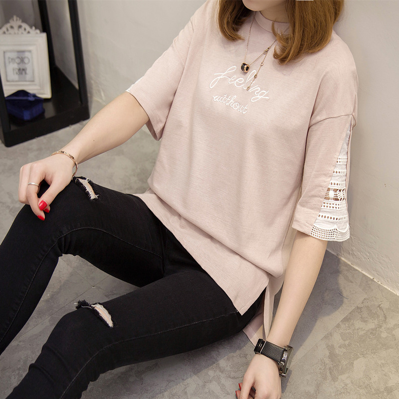 新款韓版春季女裝時尚個性潮中長拼接短袖t恤女夏裝小衫打底