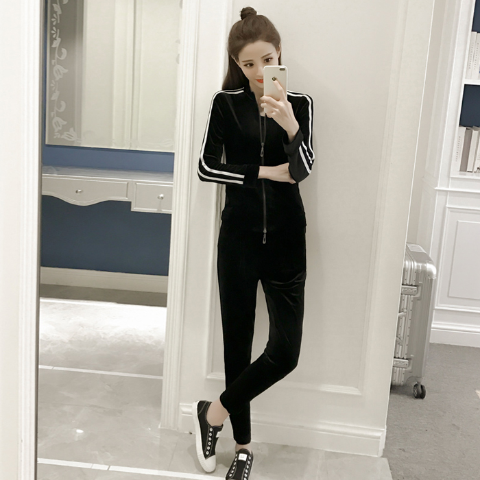 秋裝新款韓版時尚條紋長袖外套上衣套裝休閑運動小腳褲兩件套女裝