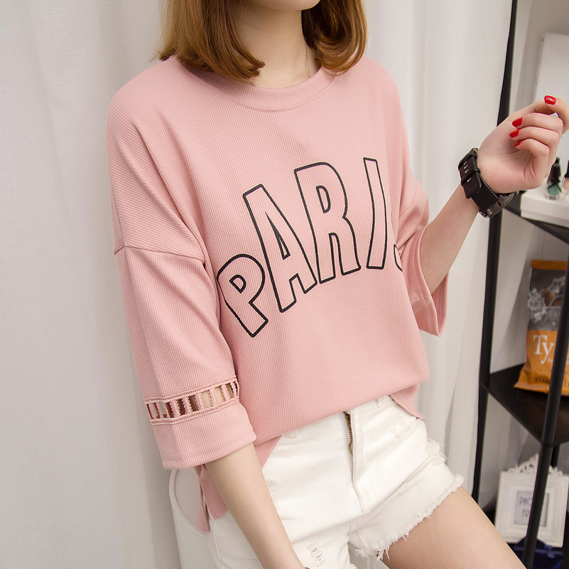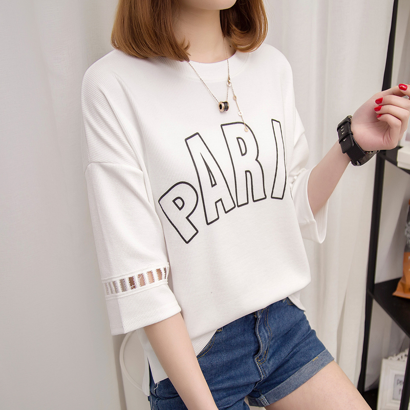 短袖t恤女中長袖上衣女夏裝打底衫寬松韓版白色體恤衫半袖百搭潮