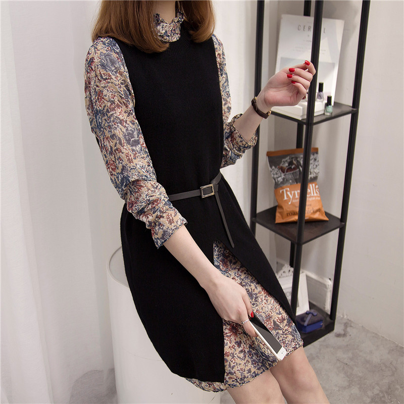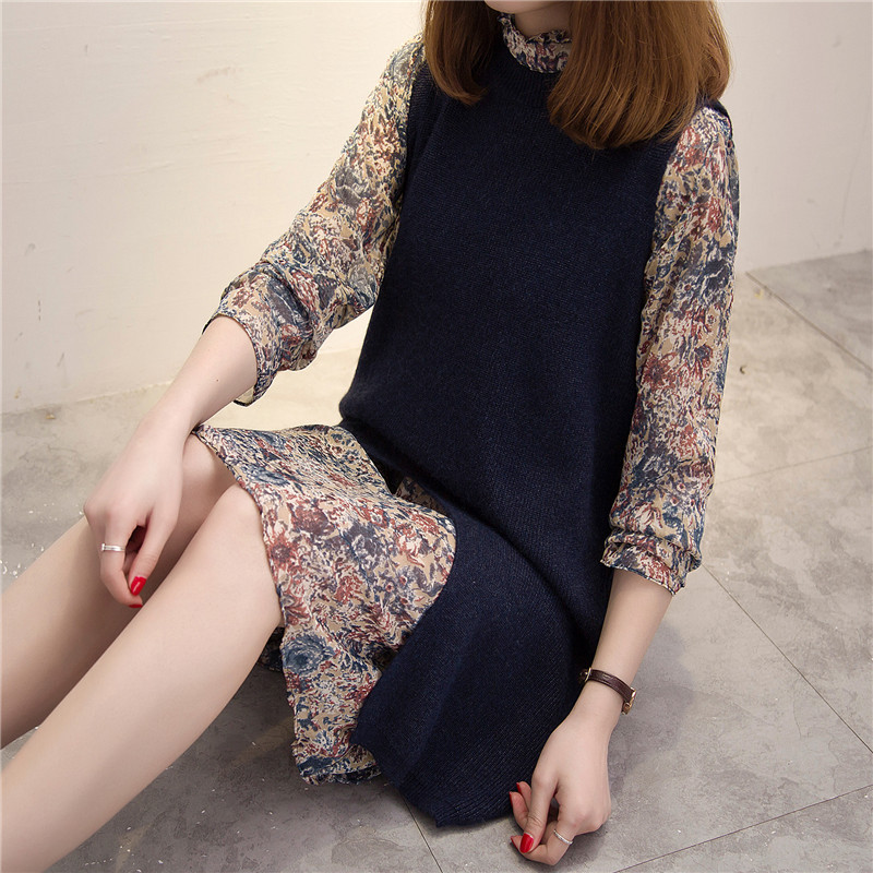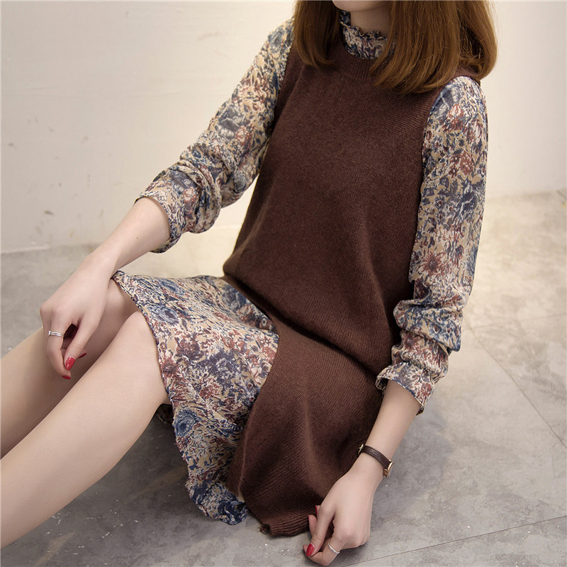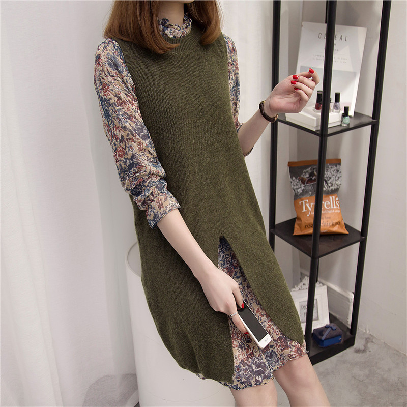 女裝韓版學生寬松中長款針織衫背心裙女春裝雪紡兩件套新款潮