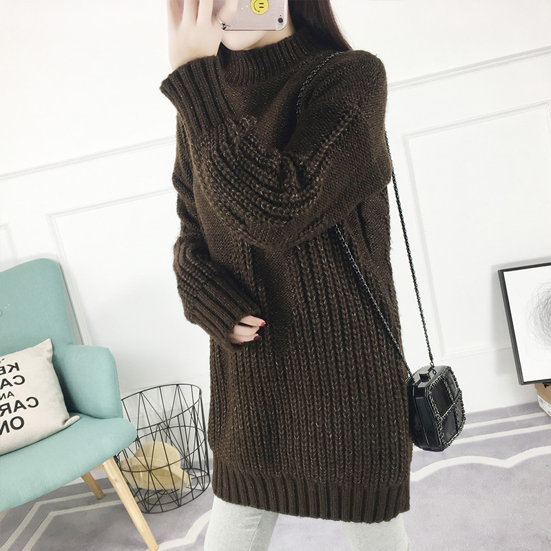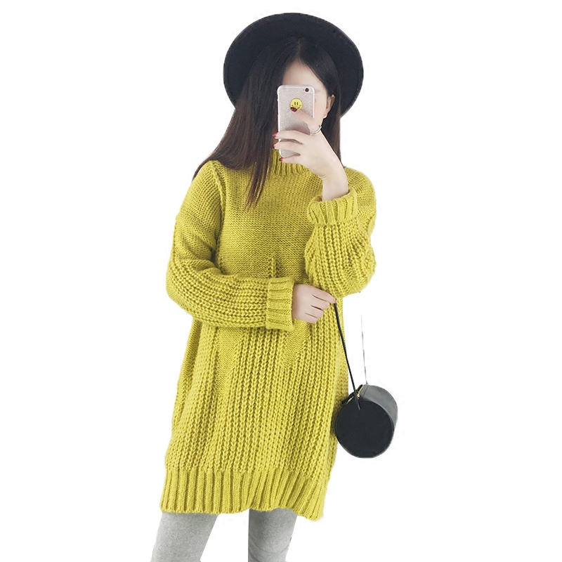 韓版秋冬套頭毛衣女寬松中長款針織衫粗毛線衣外套女裝新款潮