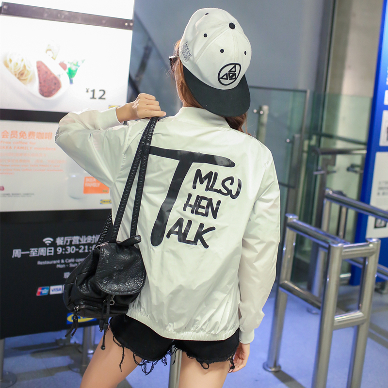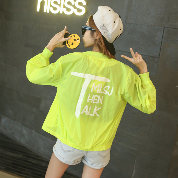 短外套女長袖春裝新款韓版寬松字母印花學生糖果色防曬衣女夏