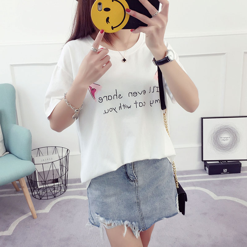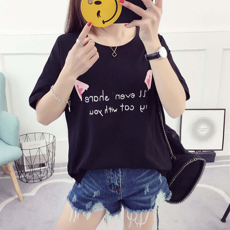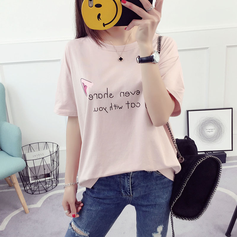 字母短袖t恤寬松韓版潮學生百搭韓國夏季女裝半袖上衣打底衫體恤