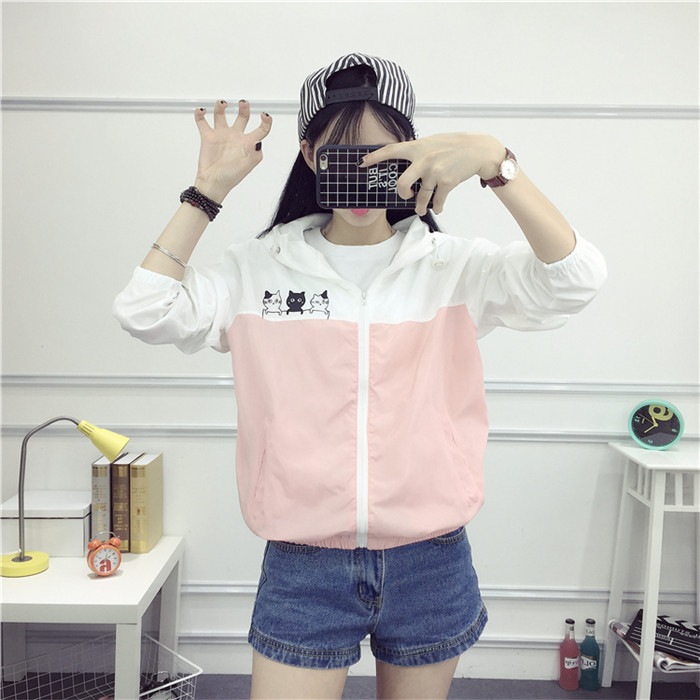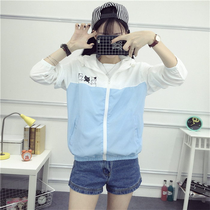 2017夏季新款貓咪防曬衣女長袖韓版學生百搭寬松防曬服薄款外套潮