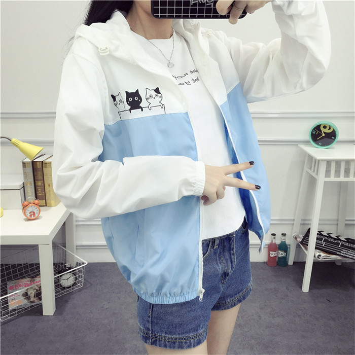 / 2017夏季新款貓咪防曬衣女長袖韓版學生百搭寬松防曬服薄款外套潮