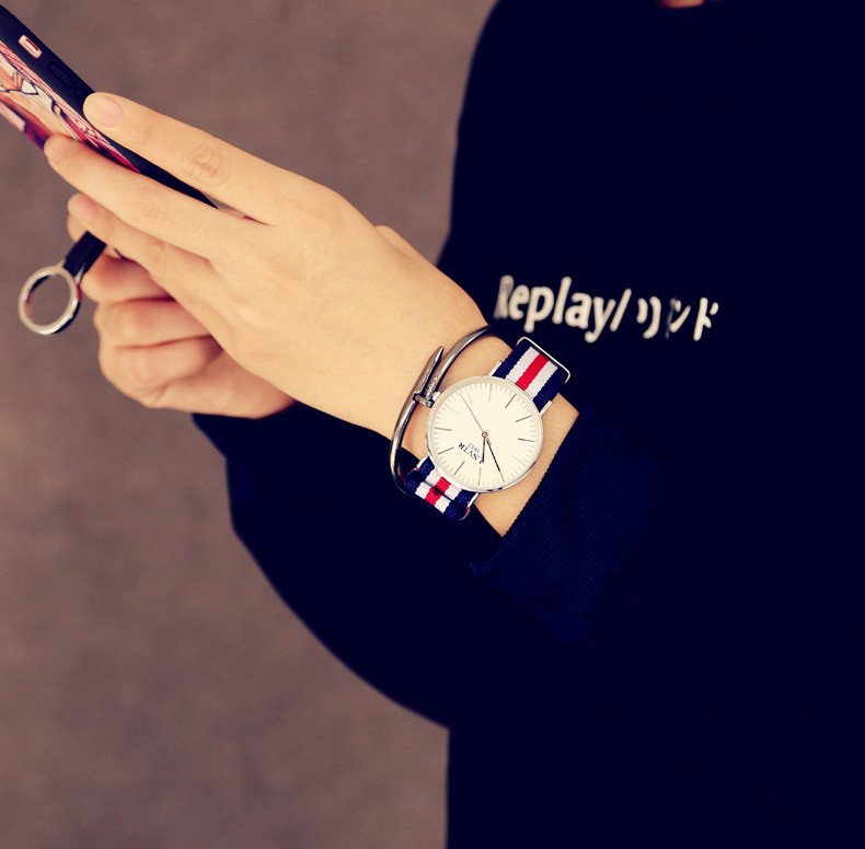新款:下面是(黑面)尼龍/PU表帶 英倫復古 條紋時尚