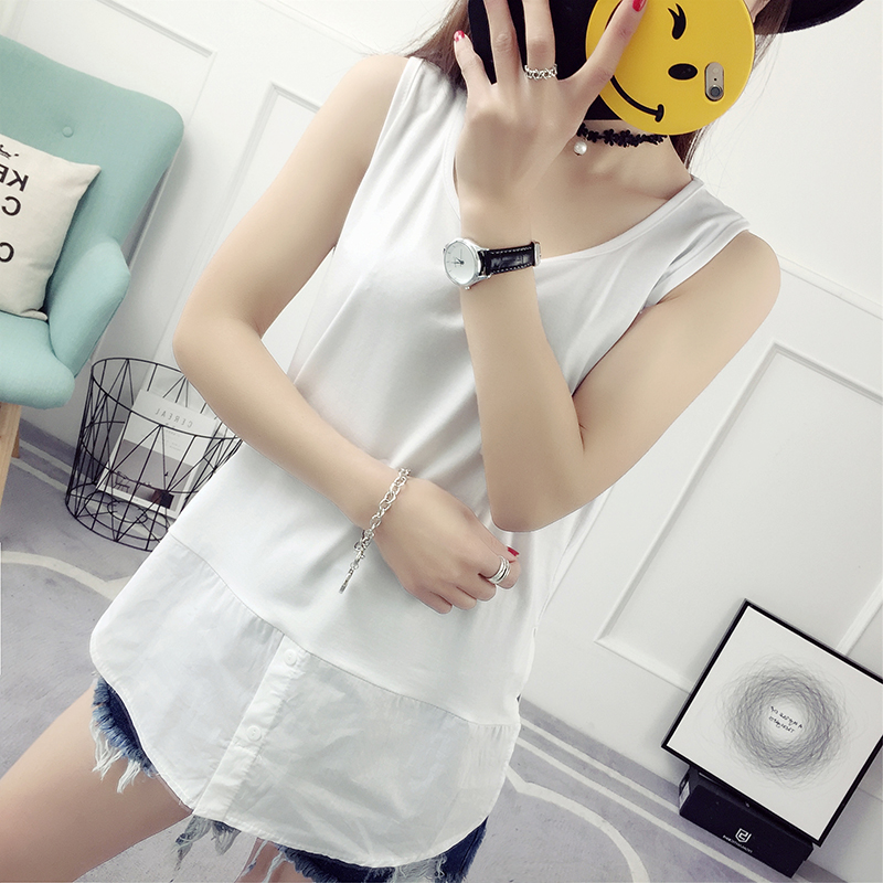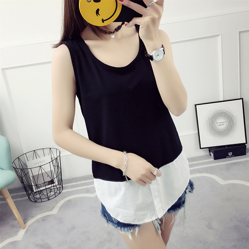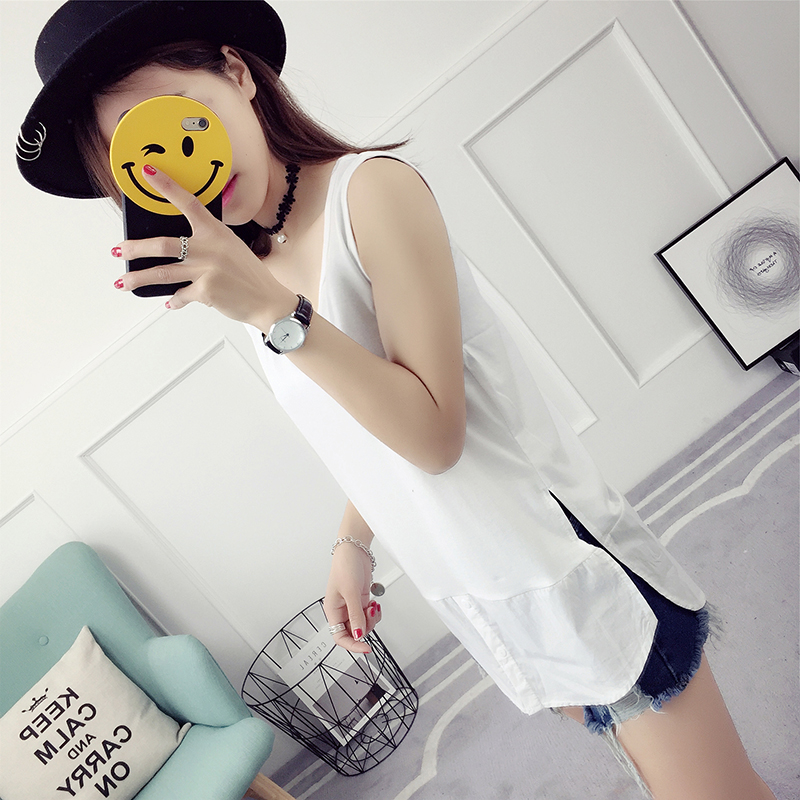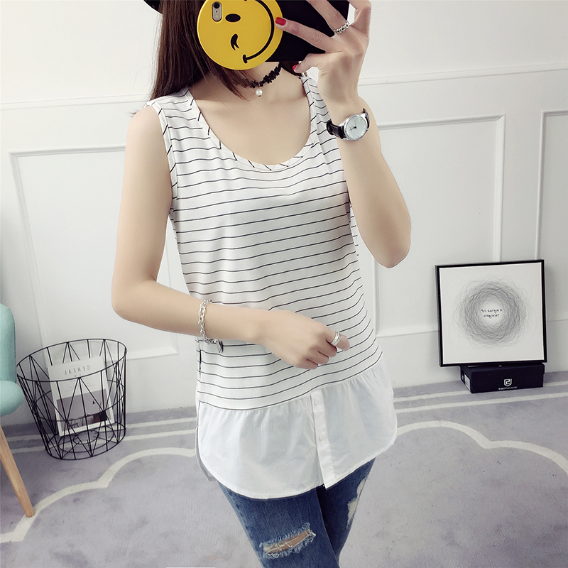 條紋無袖t恤女夏季吊帶背心中長款寬松上衣內搭打底衫百搭坎袖裙