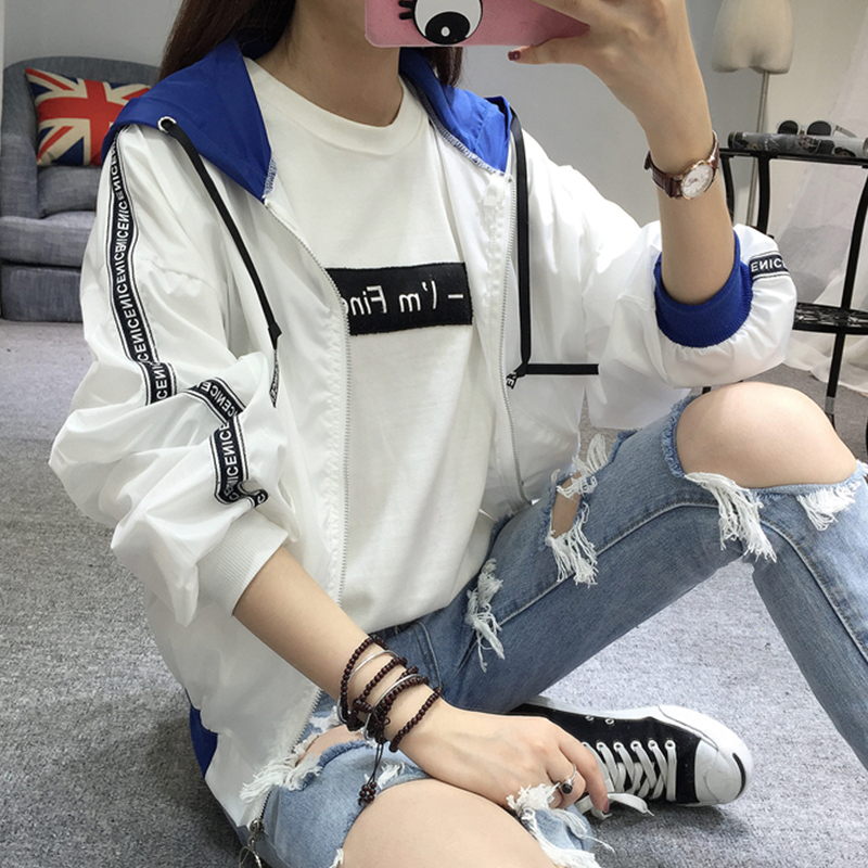 防曬衣女2017夏季新款潮韓版學院風寬松百搭短款長袖連帽棒球服bf