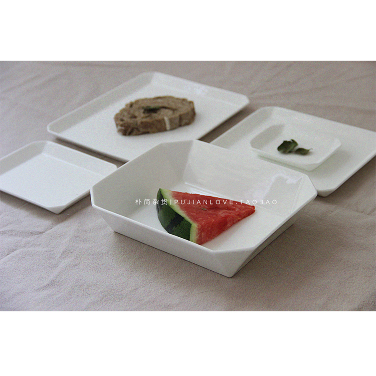 樸簡|北歐簡約幾何菱形陶瓷餐具 純白色碗盤 早餐盤 西餐盤