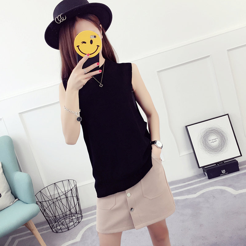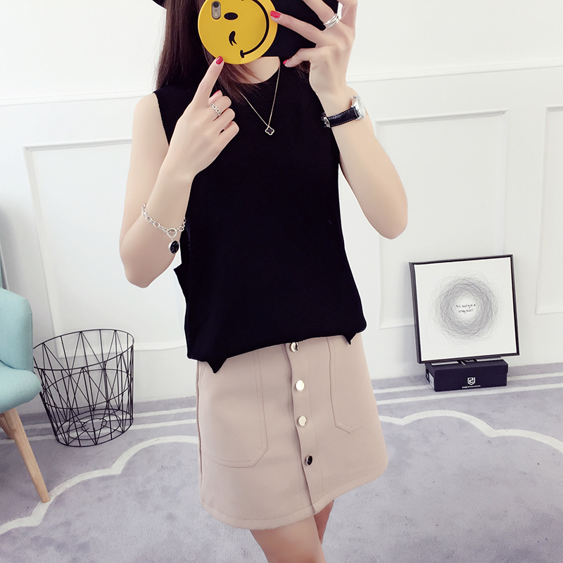 毛衣馬甲女春秋新款套頭寬松上衣針織短袖背心冰絲打底衫薄款