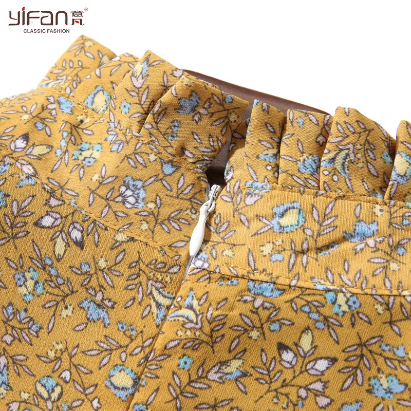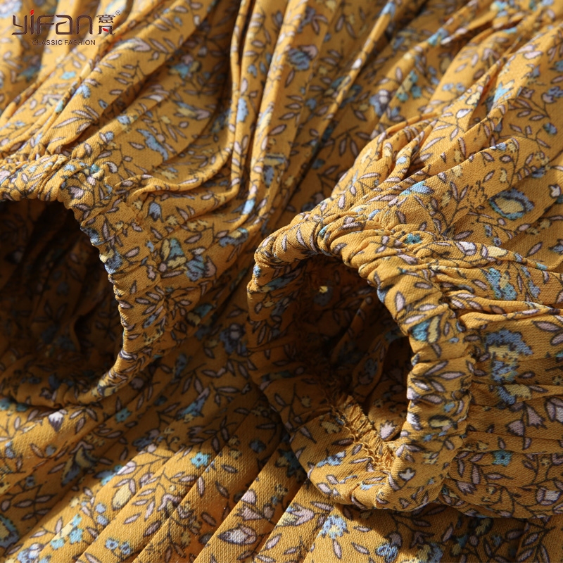春裝雪紡松緊腰長款連衣裙女裝新款長袖百褶裙碎花裙打底裙新