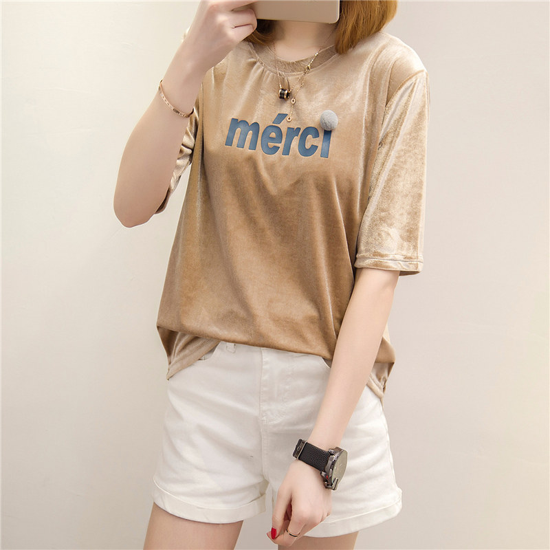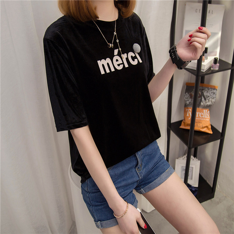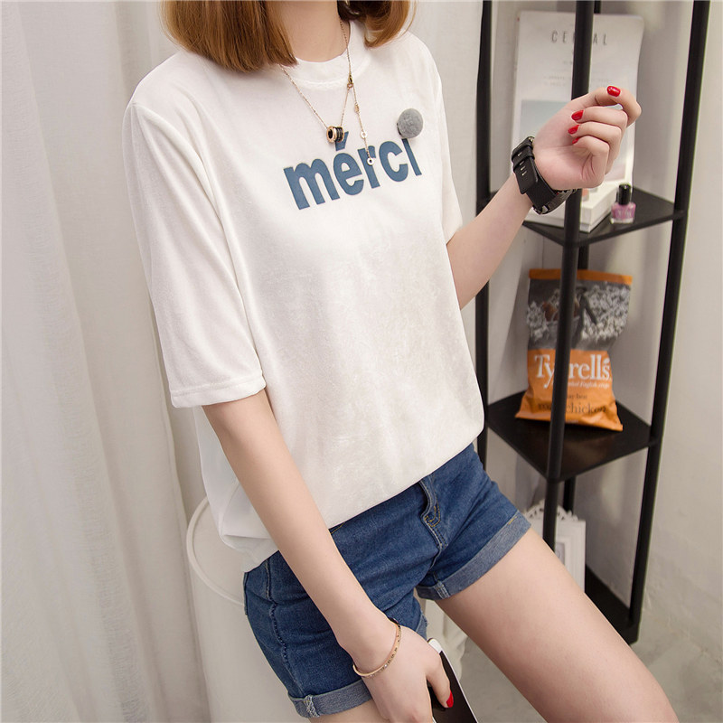 女裝春裝新款潮女純色字母體恤夏季寬松個性短袖t恤女打底衫