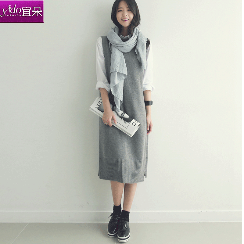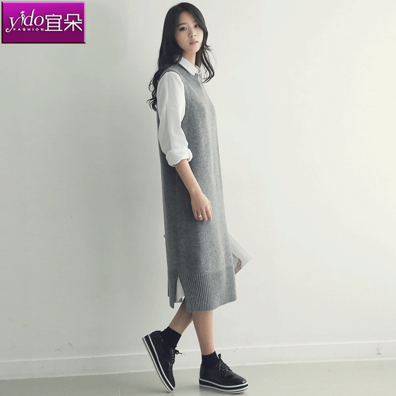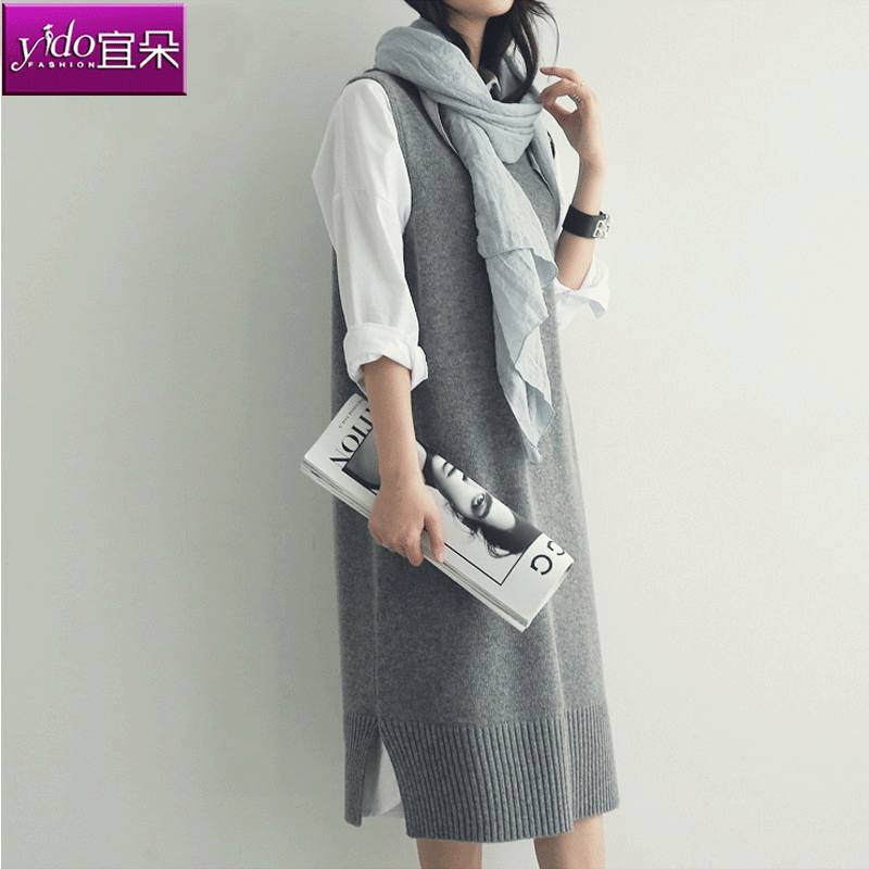 中長款毛衣背心女春季新款套頭針織馬甲女學生圓領針織衫長裙