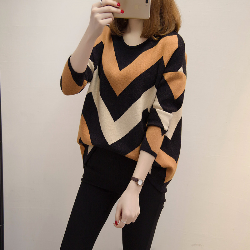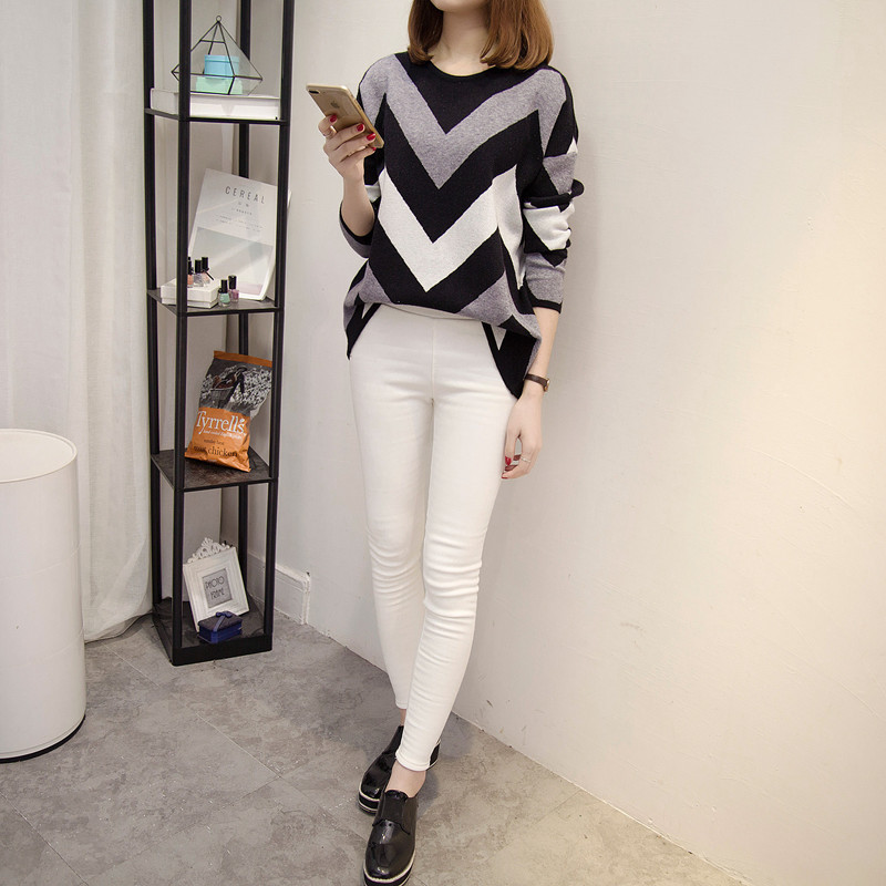 長袖打底衫韓版圓領套頭針織打底衫新款潮拼色毛衣加厚外套