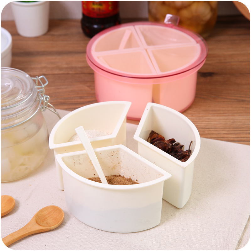 創意調料盒廚房用品調料瓶多用途分隔式三色創意調味盒塑料鹽罐