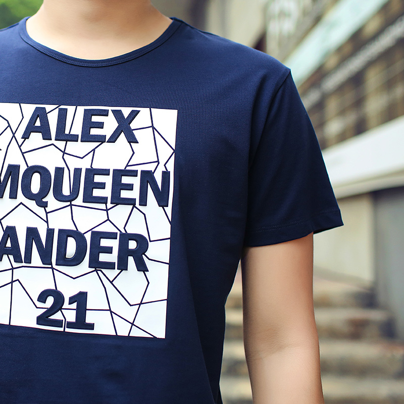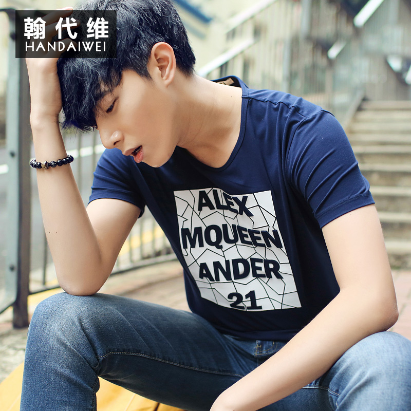夏裝新款男士短袖t恤韓版圓領修身印花半截袖體恤男打底衫