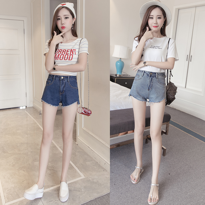春季新款韓版休閑女裝高腰顯瘦毛邊百搭修身牛仔短褲熱褲潮