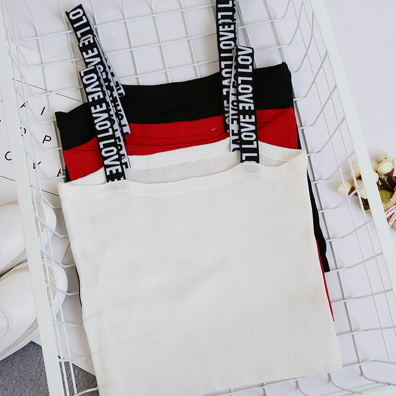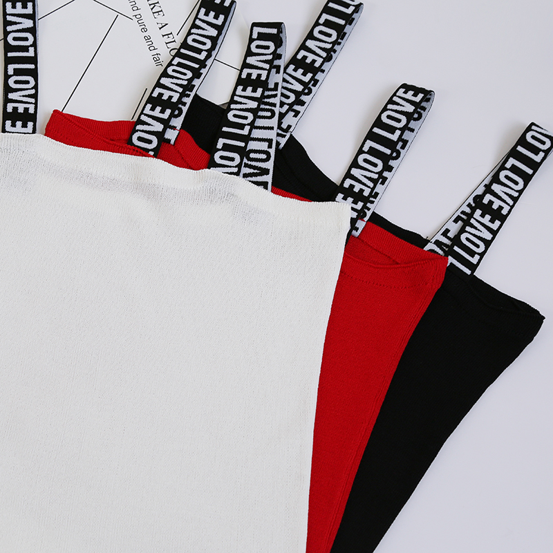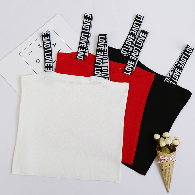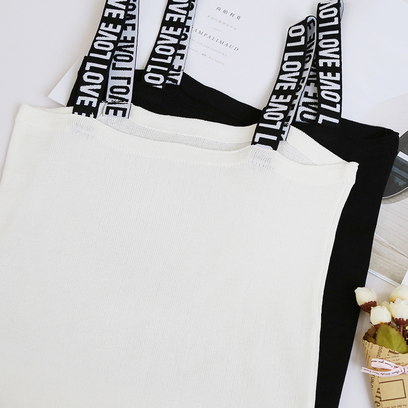 無袖針織背心女短款修身外穿打底百搭學生吊帶夏季內穿字母肩帶小